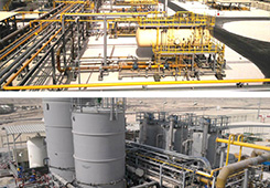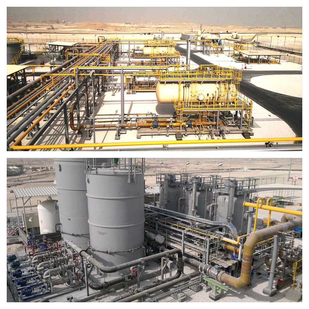 As part of the Bahrain Awali field development new drilling programme, Tatweer Petroleum awarded to MCSC the EPC contract for building two identical tank batteries. To process the increased light oil production, each tank battery unit has a set of common facilities serving separation trains with provision for a third separation train to be added in future. Each tank battery separation train is designed to handle an oil flow rate of 10,800 bbl/day, a produced water flow rate of 69,500 bbl/day and 1% of total liquid volume for residual gas.